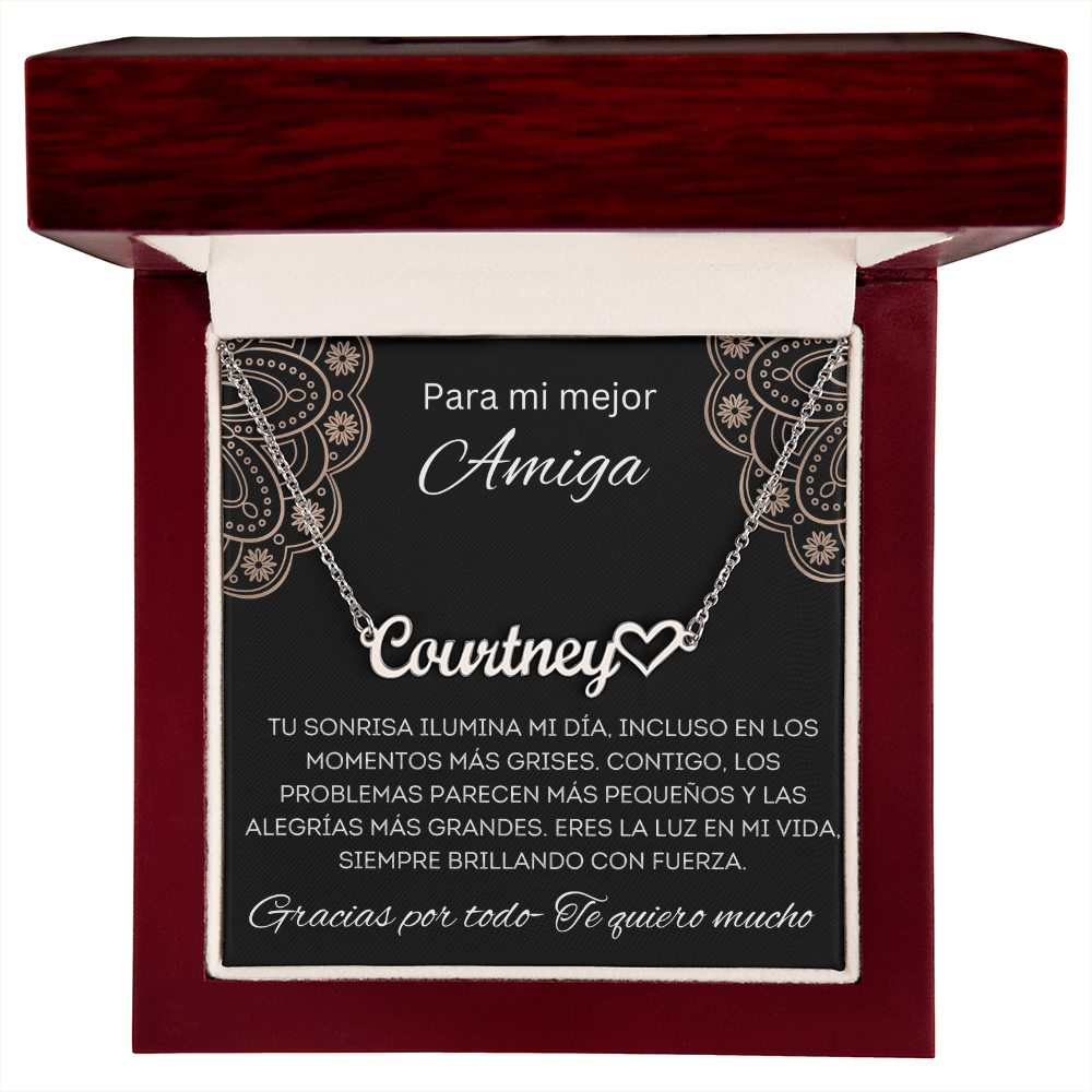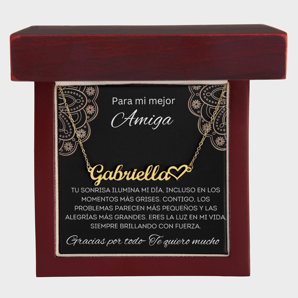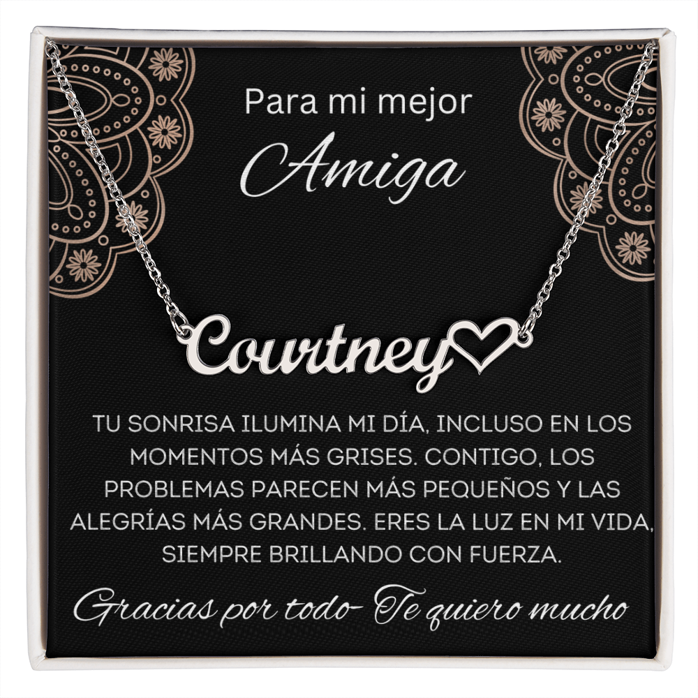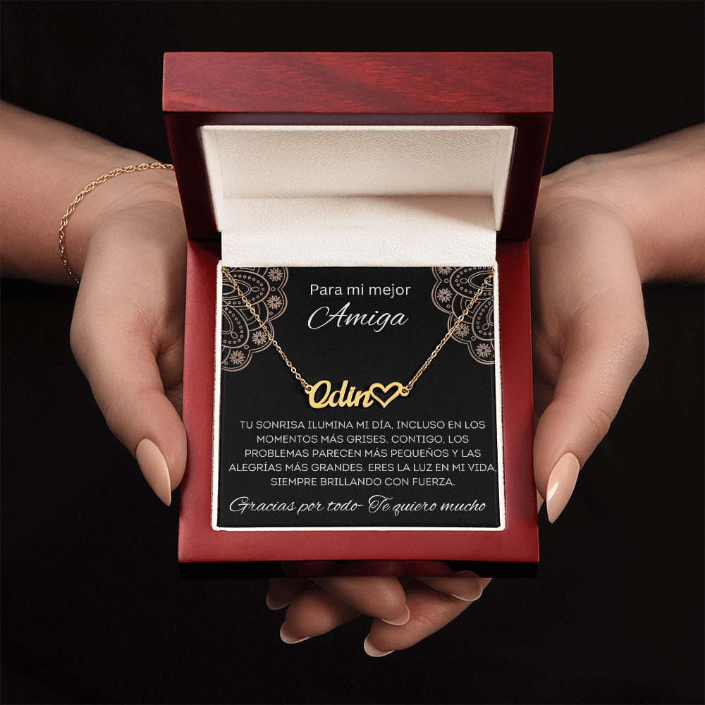 ยกUn regalo personalizado y considerado es la manera perfecta de demostrar tu aprecio por tu ser querido! Nuestro Collar Personalizado con Nombre en Forma de Corazรณn es un elegante y con estilo accesorio que se adapta a cualquier ocasiรณn, ya sea una festividad especial, aniversario o simplemente un gesto espontรกneo de afecto. Con su diseรฑo รบnico y toque personalizado, este collar seguramente serรก un recuerdo preciado y atesorado por aรฑos venideros.